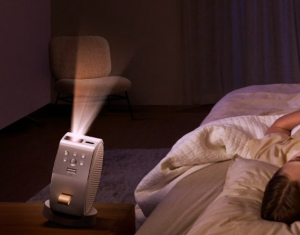 睡房使用投影機,空間通常較小,光線可控,對亮度的要求相對較低。更重要的是便攜性、可調角度和自動校正功能。GV50是這個情境的專門機型,底座設計專為床邊投影天花板而設。M1 Max的360度旋轉支架同樣可以輕鬆投影天花板。MoGo 3 Pro的隱藏式雲台也可以手動調節130度角度。